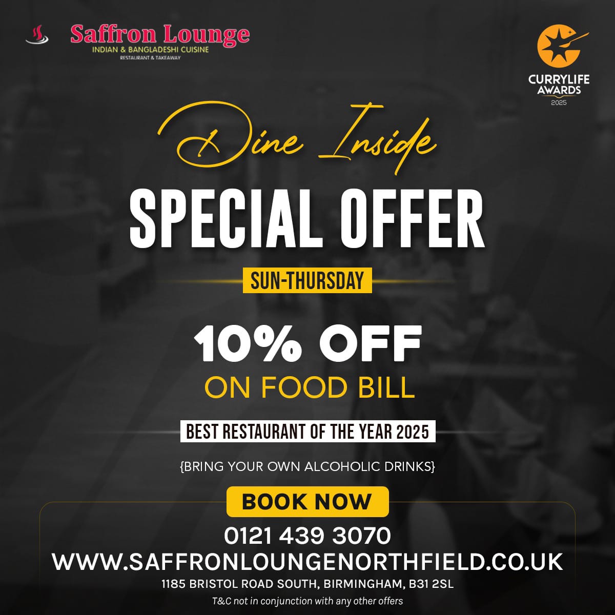 A well-recognised eatery in Northfield , Saffron Lounge is a pioneer in preparing Indian & Bangladeshi cuisines. To provide you with a unique food experience, Saffron Lounge offers exquisite quintessential Bengali dishes that can satiate the long lost cravings for savouring Indian delicacies within you.